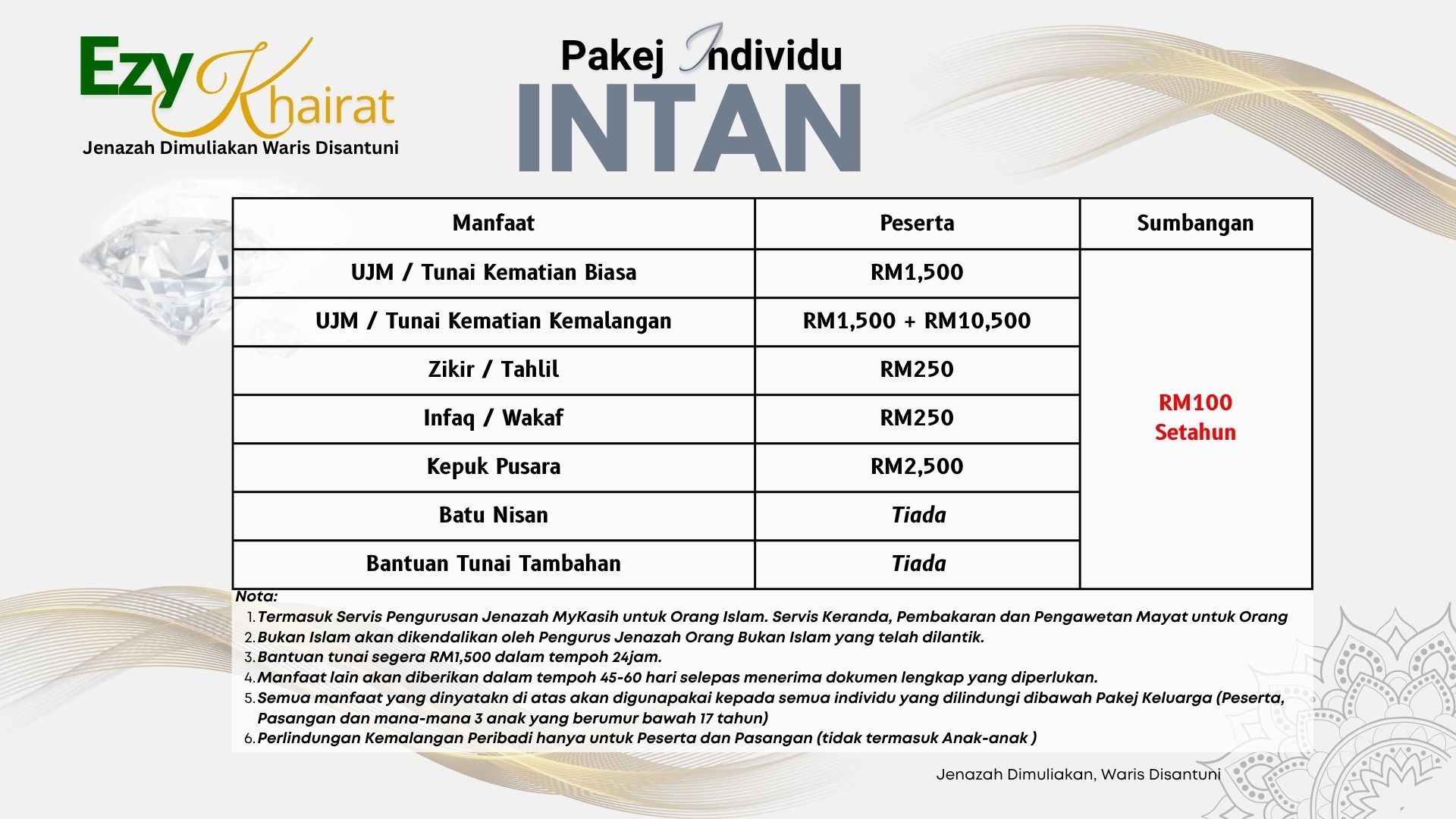 Oleh itu EzyKhairat diperkenalkan bagi menyediakan kemudahan pasukan pengurusan jenazah atau bantuan kewangan segera, kepada semua ahli / peserta khususnya dan umat Islam di Malaysia amnya.